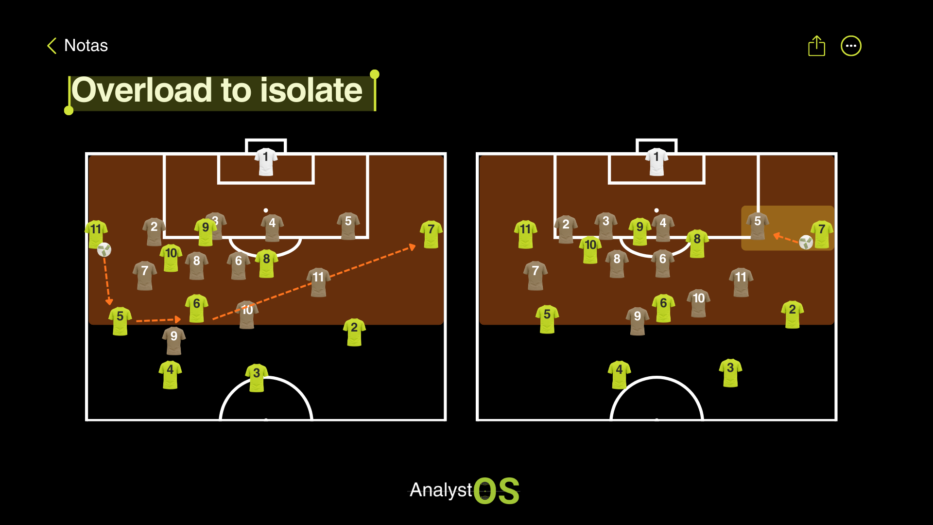 O princípio do overload to isolate parte dessa ideia: sobrecarregar uma zona do campo para forçar uma resposta coletiva, com o objetivo de libertar um jogador noutra zona, em condições favoráveis.