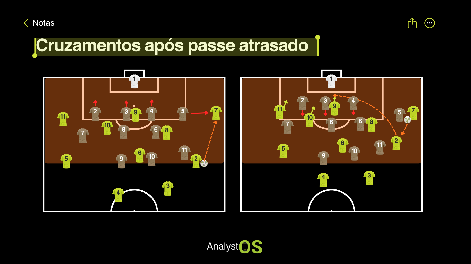 Quando o passe atrasado é seguido de uma rápida preparação do cruzamento, ataque coordenado à área e movimentos em sentidos opostos, a linha defensiva encontra-se em transição de comportamento.