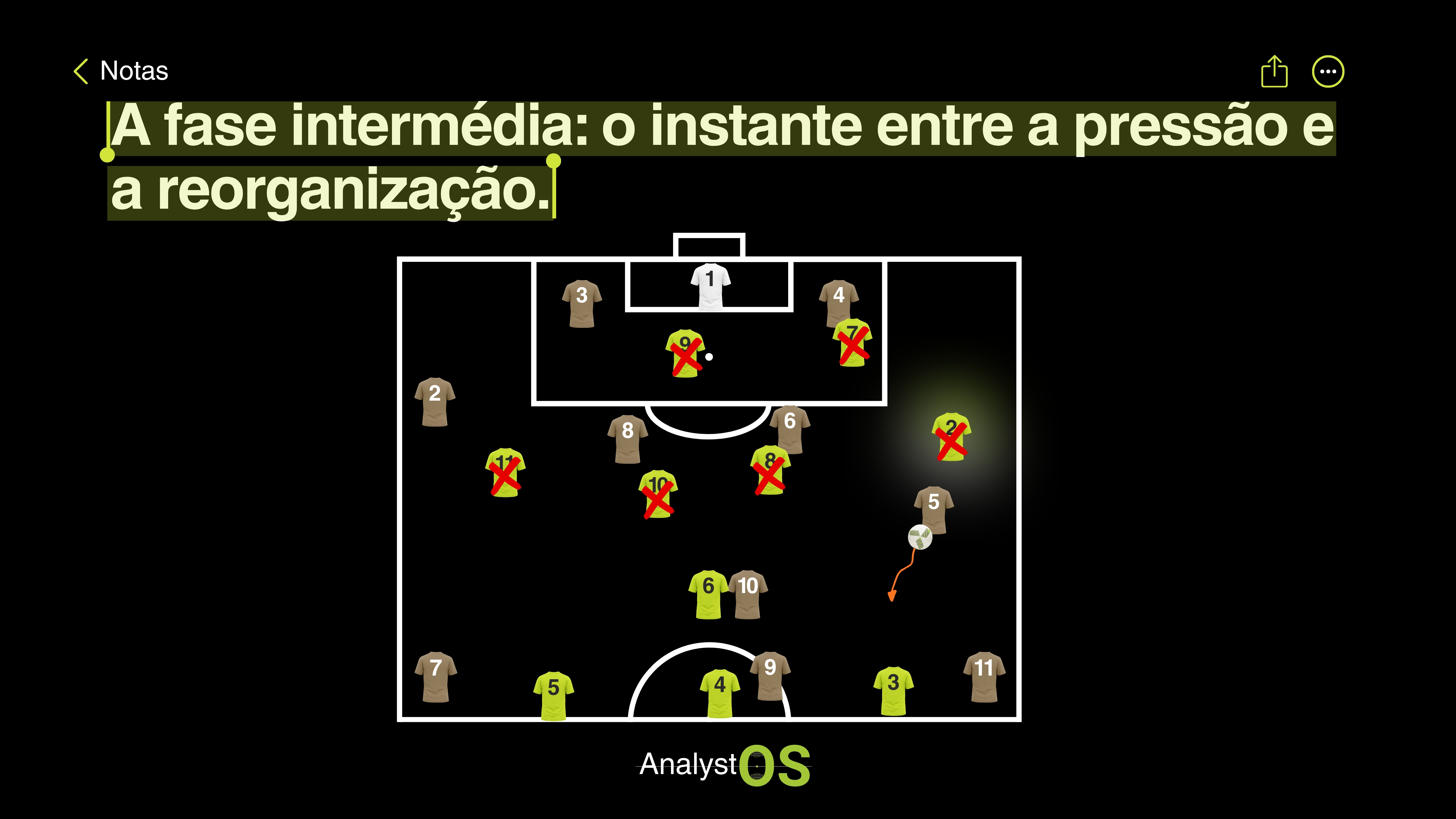 Mas nos últimos meses, um novo problema começou a ganhar destaque: o momento entre fases, o instante em que a equipa ainda não saiu completamente da pressão e ainda não estabilizou na estrutura zonal.