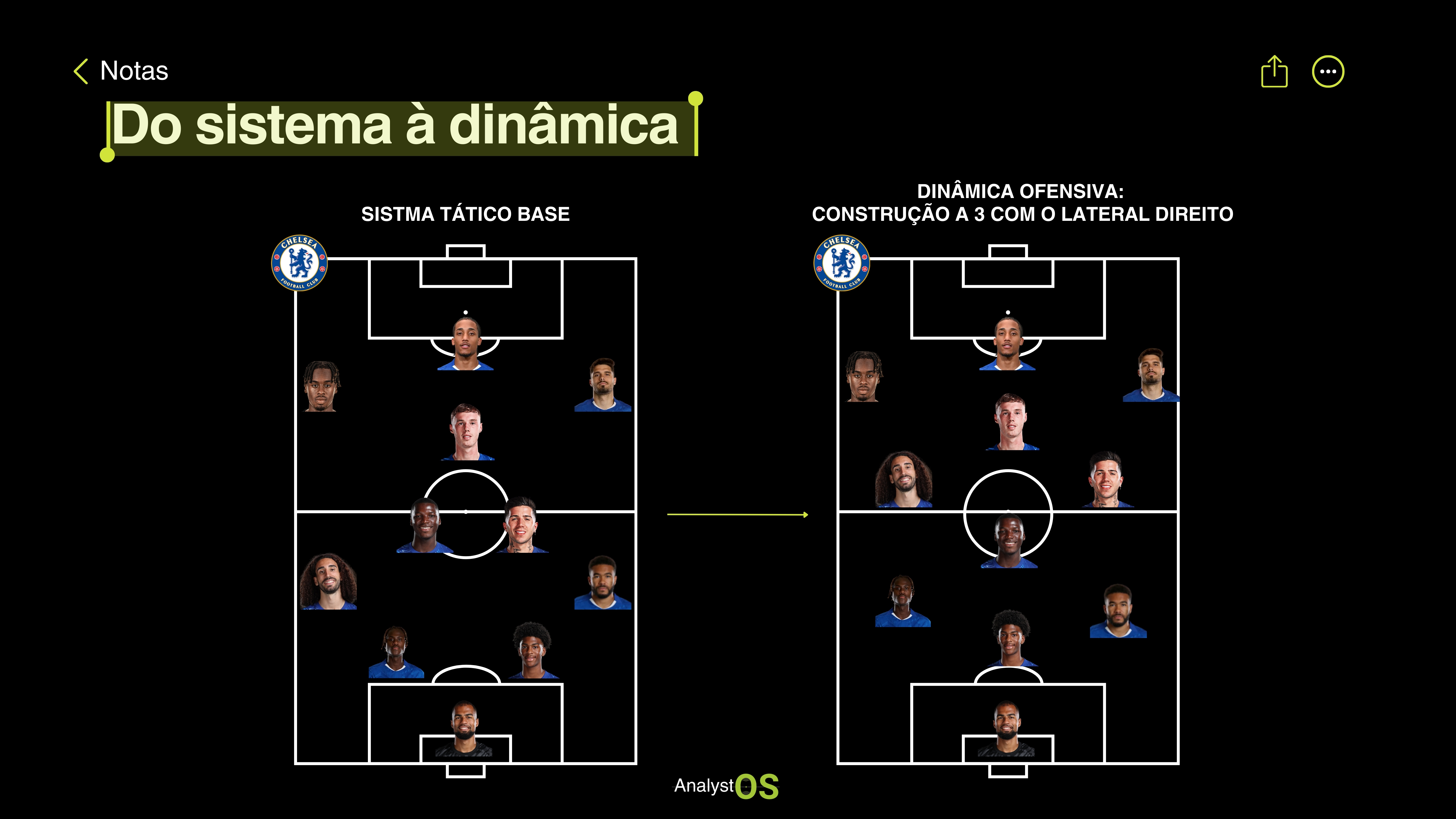 Mas não são os únicos: médios e avançados também assumem funções que distorcem o sistema base e dão novas leituras à equipa.
