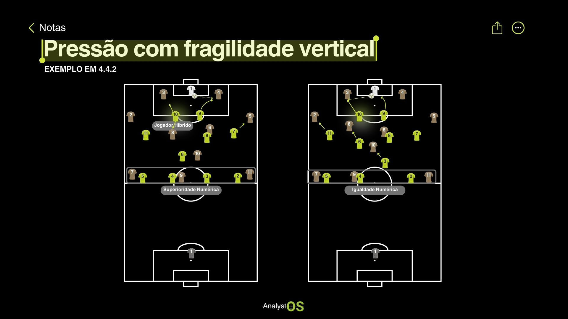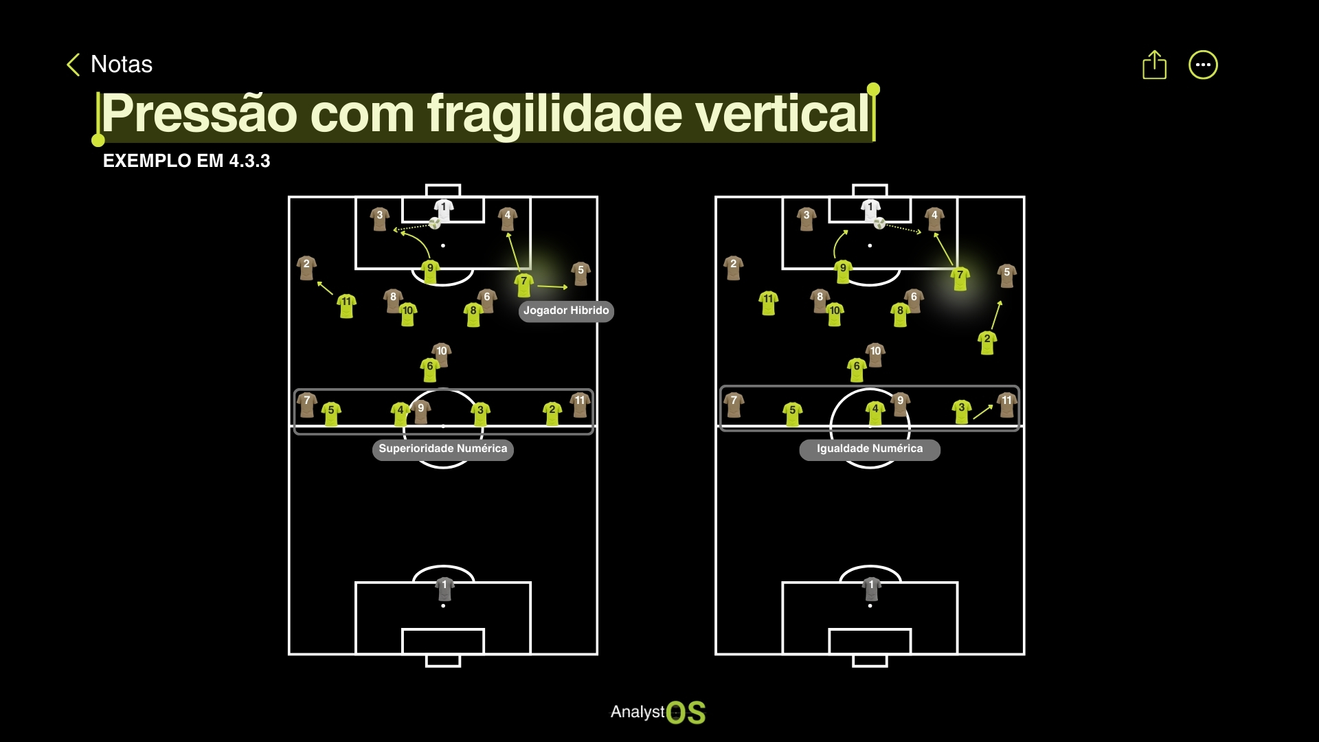 Depois, vem a leitura da fragilidade assumida. Cada variante, seja com fragilidade vertical ou horizontal, revela onde a equipa está disposta a correr riscos. Essa perceção é decisiva para preparar uma estratégia ofensiva que ataque precisamente nesses espaços.